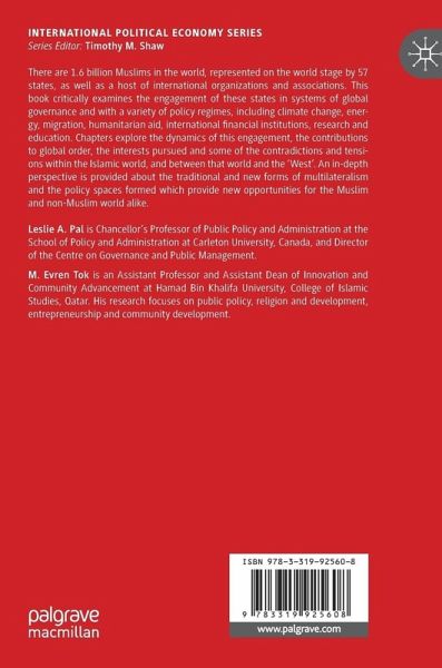 There are 1.6 billion Muslims in the world, represented on the world stage by 57 states, as well as a host of international organizations and associations. This book critically examines the engagement of these states in systems of global governance and with a variety of policy regimes, including climate change, energy, migration, humanitarian aid, international financial institutions, research and education. Chapters explore the dynamics of this engagement, the contributions to global order, the interests pursued and some of the contradictions and tensions within the Islamic world, and between that world and the 'West'. An in-depth perspective is provided about the traditional and new forms of multilateralism and the policy spaces formed which provide new opportunities for the Muslim and non-Muslim world alike.