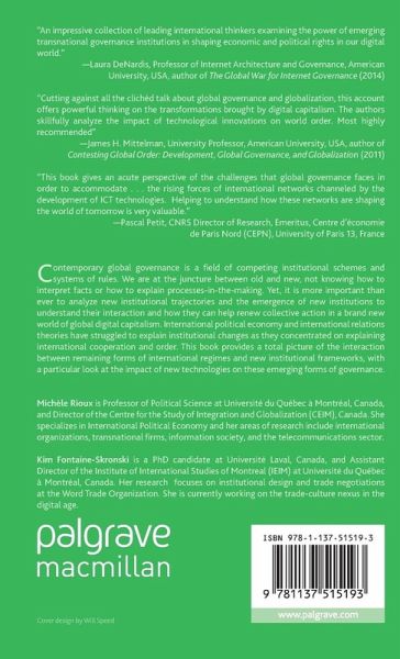 Contemporary governance is a contested field of competing institutional schemes and system of rules. This book analyzes new institutional trajectories, the renewal of old institutions or the emergence of new ones, to understand their interaction and how they can help renew collective action in a new world of global digital capitalism.