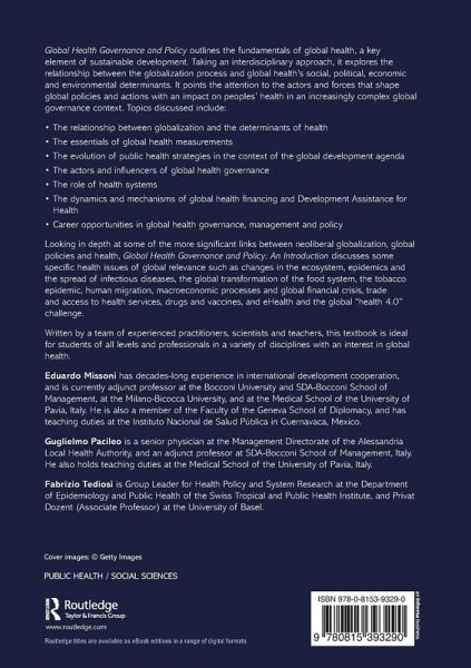 Global Health Governance and Policy outlines the fundamentals of global health, a key element of sustainable development. Taking an interdisciplinary approach, it explores the relationship between the globalization process and global health's social, political, economic and environmental determinants. It points the attention to the actors and forces that shape global policies and actions with an impact on peoples' health in an increasingly complex global governance context. Topics discussed include: The relationship between globalization and the determinants of health The essentials of global health measurements The evolution of public health strategies in the context of the global development agenda The actors and influencers of global health governance The role of health systems The dynamics and mechanisms of global health financing and Development Assistance for Health Career opportunities in global health governance, management and policy Looking in depth at some of the more significant links between neoliberal globalization, global policies and health, Global Health Governance and Policy: An Introduction discusses some specific health issues of global relevance such as changes in the ecosystem, epidemics and the spread of infectious diseases, the global transformation of the food system, the tobacco epidemic, human migration, macroeconomic processes and global financial crisis, trade and access to health services, drugs and vaccines, and eHealth and the global "health 4.0" challenge. Written by a team of experienced practitioners, scientists and teachers, this textbook is ideal for students of all levels and professionals in a variety of disciplines with an interest in global health.