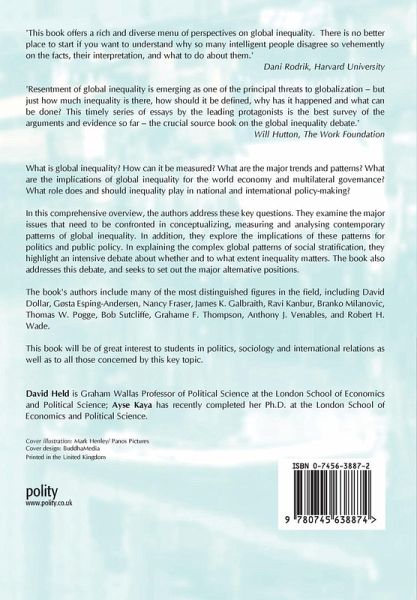What is global inequality? How can it be measured? What are the major trends and patterns? What are the implications of global inequality for the world economy and multilateral governance? What role does and should inequality play in national and international policy-making? In this comprehensive overview, the authors address these key questions. They examine the major issues that need to be confronted in conceptualizing, measuring and analysing contemporary patterns of global inequality. In addition, they explore the implications of these patterns for politics and public policy. In explaining the complex global patterns of social stratification, they highlight an intensive debate about whether and to what extent inequality matters. The book also addresses this debate, and seeks to set out the major alternative positions. The book's authors include many of the most distinguished figures in the field, including David Dollar, Gøsta Esping-Andersen, Nancy Fraser, James K. Galbraith, Ravi Kanbur, Branko Milanovic, Thomas W. Pogge, Bob Sutcliffe, Grahame F. Thompson, Anthony J. Venables, and Robert H. Wade. This book will be of great interest to students in politics, sociology and international relations as well as to all those interested in this key topic.