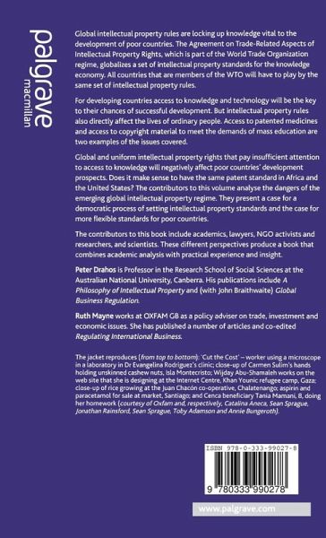 Intellectual property rights such as patents can reduce access to knowledge in genetics, health, agriculture, education and information technology, particularly for people in developing countries. Global Intellectual Property Rights shows how the new global rules of intellectual property have been the product of the strategic behaviour of multinationals, rather than democratic dialogue. The final section of the book suggests strategies aimed at developing more flexible standard for poor countries, and for keeping knowledge in the intellectual commons.