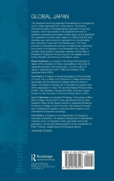 Roger Goodman is a Lecturer in the Social Anthropology of Japan at the University of Oxford, specialising in the study of Japanese education and social policy. He is the author of Japan's 'International Youth' (1990) and Children of the Japanese State (2000). Ceri Peach is Professor of Social Geography at the University of Oxford. He is a fellow of St Catherine's College Oxford and associated with St Catherine's College Institute at Kobe in Japan. His research interests are in international migration and ethnic segregation in cities. He has held Visiting Professorships at ANU, Yale, Berkeley, Harvard and UBD, and was a Japan Society for the Promotion of Science Visiting Fellow in 2001. Ayumi Takenaka is Richard Storry Junior Research Fellow at the Nissan Institute of Japanese Studies at St Antony's College, Oxford University, and an Assistant Professor of Sociology at Bryn Mawr College. Her research interests are in international migration, racial and ethnic relations, and international comparative sociology. Paul White is a Professor in the Department of Geography, University of Sheffield. His research interests are in international migration and in comparative urban, population and social geography. He has held visiting positions at the Universities of Paris I (France), Cagliari (Italy) and Zaragoza (Spain).