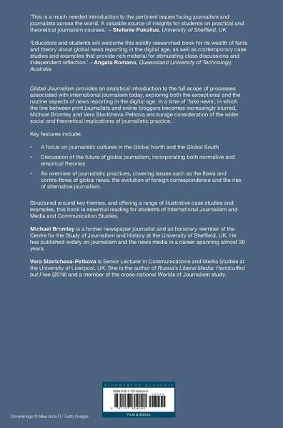 Providing a truly comprehensive overview of international journalism and global news reporting in the digital age, this new introductory textbook surveys the full variety of contexts that journalists around the world operate in; the challenges and pressures they face; their journalistic practices; and the wider theoretical and social implications. Analysing key scholarship in the field, Vera Slavtcheva-Petkova and Michael Bromley explore not just journalism as a single entity, but equally the multiple cultures which host journalism and the variety of journalisms which exist across the world. Clear and accessible, this is an ideal companion for undergraduate and postgraduate students of international and global journalism on Journalism or Media and Communication Studies degrees.