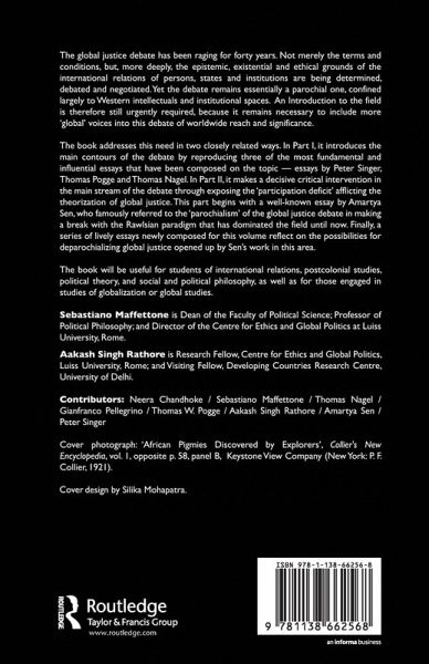The global justice debate has been raging for forty years. Not merely the terms and conditions, but, more deeply, the epistemic, existential and ethical grounds of the international relations of persons, states and institutions are being determined, debated and negotiated. Yet the debate remains essentially a parochial one, confined largely to Western intellectuals and institutional spaces. An Introduction to the field is therefore still urgently required, because it remains necessary to include more 'global' voices into this debate of worldwide reach and significance. The book addresses this need in two closely related ways. In Part I, it introduces the main contours of the debate by reproducing three of the most fundamental and influential essays that have been composed on the topic - essays by Peter Singer, Thomas Pogge and Thomas Nagel. In Part II, it makes a decisive critical intervention in the main stream of the debate through exposing the participation deficit afflicting the theorization of global justice. This part begins with a well-known essay by Amartya Sen, who famously referred to the 'parochialism' of the global justice debate in making a break with the Rawlsian paradigm that has dominated the field until now. Finally, a series of lively essays newly composed for this volume reflect on the possibilities for deparochializing global justice opened up by Sen's work in this area. The book will be useful for students of international relations, postcolonial studies, political theory, and social and political philosophy, as well as for those engaged in studies of globalization or global studies.