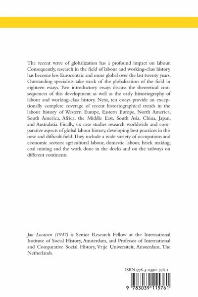 Contents: Jan Lucassen: Introduction - Marcel van der Linden: The «Globalization» of Labour and Working-Class History and its Consequences - Jan Lucassen: Writing Global Labour History c. 1800-1940: A Historiography of Concepts, Periods, and Geographical Scope - Frederick Cooper: African Labor History - Zachary Lockman: Reflections on Labor and Working-Class History in the Middle East and North Africa - Sabyasachi Bhattacharya: Paradigms in the Historical Approach to Labour Studies on South Asia - Akira Suzuki: The History of Labor in Japan in the Twentieth Century: Cycles of Activism and Acceptance - Bryan D. Palmer: Fin-de-Siècle Labour History in Canada and the United States: A Case for Tradition - Dick Geary: Labour in Western Europe from c. 1800 - John D. French: The Laboring and Middle-Class Peoples of Latin America and the Caribbean: Historical Trajectories and New Research Directions - Lucy Taksa: What's in a Name? Labouring Antipodean History in Oceania - Arif Dirlik: Workers, Class, and the Socialist Revolution in Modern China - Andrei Sokolov: The Drama of the Russian Working Class and New Perspectives for Labour History in Russia - Prasannan Parthasarathi: Agricultural Labor and Property: A Global and Comparative Perspective - Ratna Saptari: Studying Asian Domestic Labour Within Global Processes: Comparisons and Connections - Jan Lucassen: Brickmakers in Western Europe (1700-1900) and Northern India (1800-2000): Some Comparisons - Ian Phimister: Global Labour History in the Twenty-First Century: Coal Mining and Its Recent Pasts - Lex Heerma van Voss: «Nothing to Lose but a Harsh and Miserable Life Here on Earth»: Dock Work as a Global Occupation, 1790-1970 - Shelton Stromquist: Railroad Labor and the Global Economy: Historical Patterns.