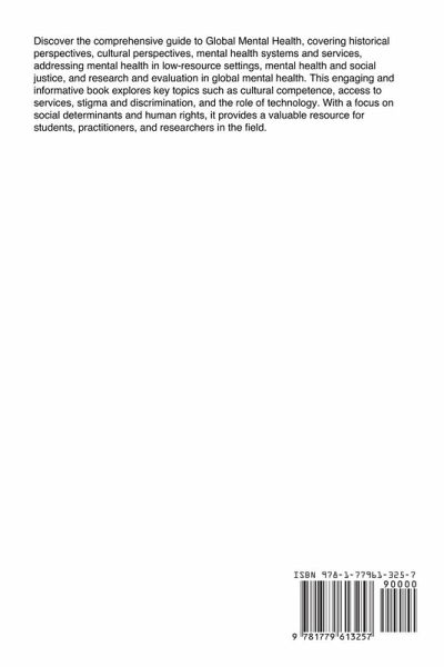 Discover the comprehensive guide to Global Mental Health, covering historical perspectives, cultural perspectives, mental health systems and services, addressing mental health in low-resource settings, mental health and social justice, and research and evaluation in global mental health. This engaging and informative book explores key topics such as cultural competence, access to services, stigma and discrimination, and the role of technology. With a focus on social determinants and human rights, it provides a valuable resource for students, practitioners, and researchers in the field.