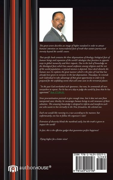 This great screen describes an image of higher standard in order to attract humans’ attention on transcendental facts of truth that sustain journey and eternity beyond the world’s course. That specific book contains the three dispensations of theology, biological facts of human beings and expansion of the world’s ideologies that function in opposite ways to global monarchy and their impacts. Due to the lack of knowledge on the theological facts which has caused confusion among religions and the rest of the world population, a rejected mission is depicted. Since devil disturbs the human race; he explains the great manner which is the plan of God that has already been given to everyone in the last dispensation. Nowadays, he reminds each individual to take advantage of that great opportunity in order to be prepared for the unfolding events that will come soon in the terrestrial planet. "In the past God overlooked such ignorance, but now, he commands all men everywhere to repent. For he has set a day to judge the world by Jesus that he has appointed." Acts 17:30-31. Since procrastination pretends to give enough time, but it does not save from unexpected cases; thereby, he encourages human beings to seek insurance of their salvation. This amazing knowledge is designed to inform and transform each one who wants to live eternally in the New Jerusalem, the celestial one. Each one would like running in a race according to his manner, but unfortunately, one has to follow the organizer’s rules! Extension of obscurity blinds the mankind easily, but the truth is given to impact the world! In fact, this is the effective gadget that guarantees perfect happiness! Flying higher for a better view!