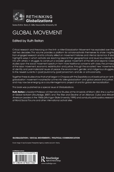 1. Theorizing and Engaging the Global Movement: From Anti-Globalization to Global Democratization: An Introduction Ruth Reitan 2. Coalescence of the Global Peace and Justice Movements Ruth Reitan 3. The Global Social Forum Rhizome: A Theoretical Framework Peter Nikolaus Funke 4.'Workers of the World, Unite'? Globalization and the Quest for Transnational Solidarity Andreas Bieler 5. Transnational Feminisms building Anti-Globalization Solidarities Janet Conway 6. Climate Change or Social Change? Environmentalism, Leftist Praxis, & Participatory Action Research Ruth Reitan and Shannon Gibson 7. An Indigenous Movement to Confront Climate Change Ben Powless 8. 'No One Is Illegal!' Resistance and the Politics of Discomfort Maurice Stierl 9. Balkanization of Politics, Politics of Balkanization Andrej Grubäi¿ 10. The Living and Being of the Streets: Fanon and the Arab Spring Anna M. Agathangelou