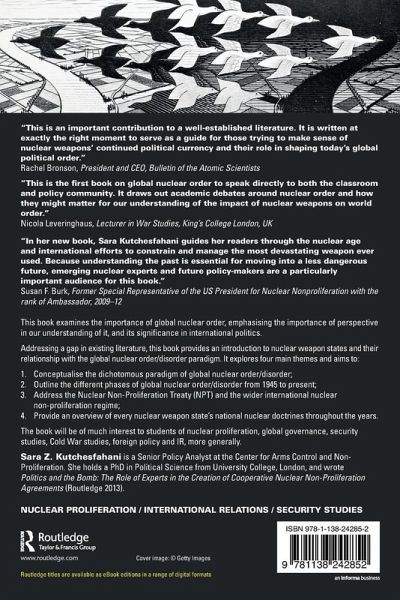 This book examines the importance of global nuclear order, emphasising the importance of perspective in our understanding of it, and its significance in international politics. Addressing a gap in existing literature, this book provides an introduction to nuclear weapon states and their relationship with the global nuclear order/disorder paradigm. It explores four main themes and aims to: 1. conceptualise the dichotomous paradigm of global nuclear order/disorder; 2. outline the different phases of global nuclear order/disorder from 1945 to present; 3. address the Nuclear Non-Proliferation Treaty (NPT) and the wider international nuclear non-proliferation regime; 4. provide an overview of every nuclear weapon state's national nuclear doctrines throughout the years. The book will be of much interest to students of nuclear proliferation, global governance, security studies, Cold War studies, foreign policy and IR, more generally.