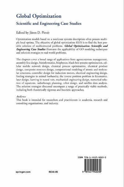 The contributed chapters cover a broad range of applications from agroecosystem management, assembly line design, bioinformatics, biophysics, black box systems optimization, cellular mobile network design, chemical process optimization, chemical product design, composite structure design, computational modeling of atomic and molecular structures, controller design for induction motors, electrical engineering design, feeding strategies in animal husbandry, the inverse position problem in kinematics, laser design, learning in neural nets, mechanical engineering design, numerical solution of equations, radiotherapy planning, robot design, and satellite data analysis. The solution strategies discussed encompass a range of practically viable methods, including both theoretically rigorous and heuristic approaches.