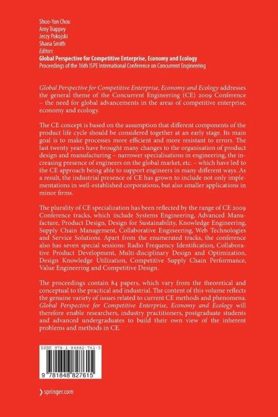 Global Perspective for Competitive Enterprise, Economy and Ecology addresses the general theme of the Concurrent Engineering (CE) 2009 Conference - the need for global advancements in the areas of competitive enterprise, economy and ecology.