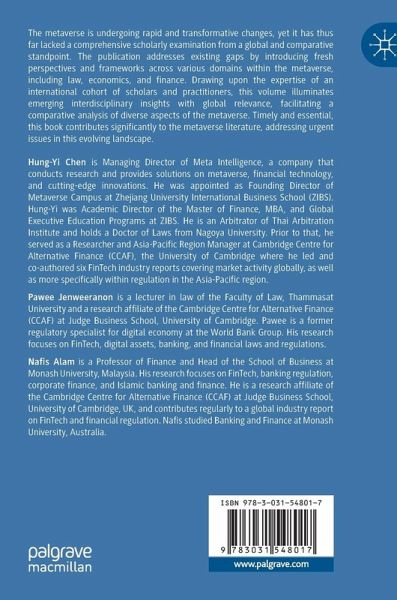 The metaverse is undergoing rapid and transformative changes, yet it has thus far lacked a comprehensive scholarly examination from a global and comparative standpoint. The publication addresses existing gaps by introducing fresh perspectives and frameworks across various domains within the metaverse, including law, economics, and finance. Drawing upon the expertise of an international cohort of scholars and practitioners, this volume illuminates emerging interdisciplinary insights with global relevance, facilitating a comparative analysis of diverse aspects of the metaverse. Timely and essential, this book contributes significantly to the metaverse literature, addressing urgent issues in this evolving landscape.