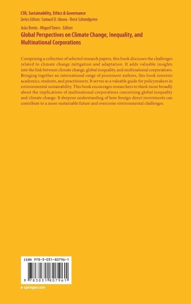Comprising a collection of selected research papers, this book discusses the challenges related to climate change mitigation and adaptation. It adds valuable insights into the link between climate change, global inequality, and multinational corporations. Bringing together an international range of prominent authors, this book interests academics, students, and practitioners. It serves as a valuable guide for policymakers in environmental sustainability. This book encourages researchers to think more broadly about the implications of multinational corporations concerning global inequality and climate change. It deepens understanding of how foreign direct investments can contribute to a more sustainable future and overcome environmental challenges.