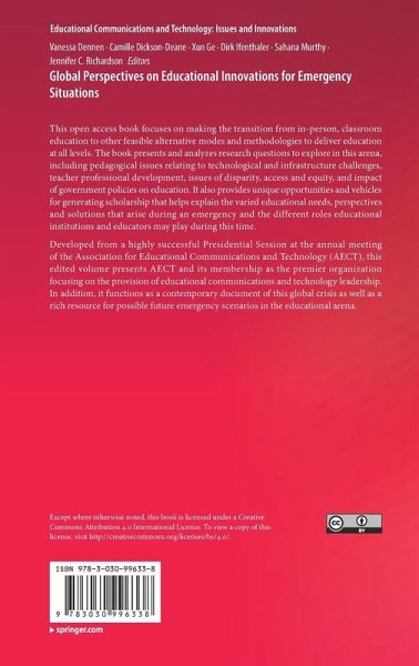 Developed from a highly successful Presidential Session at the annual meeting of the Association for Educational Communications and Technology (AECT), this edited volume presents AECT and its membership as the premier organization focusing on the provision of educational communications and technology leadership. In addition, it functions as a contemporary document of this global crisis as well as a rich resource for possible future emergency scenarios in the educational arena.