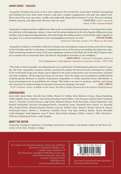 Jacqueline Goodman's invaluable collection of classic and contemporary essays on women and work is unique in that it brings together in one place a comprehensive survey of the issues surrounding this important topic, while introducing readers to many of the most significant scholars in the field. Her book will be of great interest to anyone who is concerned about the history and progress of women in the workplace. -- Sandra Sarkela, University of Memphis Jacqueline Goodman and her collaborators take on the most fundamental questions at the intersection of gender and labor in this important volume. A must read for anyone interested in the role of gender differences in pay, mobility, and occupational specialization, this book brings the leading authors on all of these topics together in one place. It is a critical contribution to the interdisciplinary literature on work. -- Katherine Newman, Princeton University This book is both accessible and sophisticated in its exploration of fundamental questions related to gender and work. Jacqueline Goodman and her contributors analyze the historical and contemporary realities of the work-family nexus that shapes and is shaped by the social construction and reconstruction of gender over time and place. All the important bases are covered-from the origin and contemporary manifestations of global gender divisions to analyses of persistent inequalities to classic questions about individualist vs. structural perspectives on possibilities for change. This book is an asset to students, scholars, and anyone else interested in understanding the dynamic intersection of gender and work. -- Jamie F. Dangler, author of Hidden in the Home: The Role of Waged Homework in the Modern World-Economy Gender-based division of labor is a problem that plagues nations, developed and developing alike. What are the origins of gendered division of labor? Does it have roots in biological differences between men and women and the social construction of gender? What forms did or does the division of labor take? How and why do societies justify divisions of labor? How does the division of labor impact women and men? Edited by Goodman (State Univ. of New York, Potsdam), this volume of 39 articles addresses these fundamental questions in a comprehensive manner. The topic is initiated with a helpful section on the origins and meaning of sex and gender and the division of labor. A section on the history of gender and work follows. Also included are two sections on wage inequality and discrimination in the workplace and sections on the global division of labor, gender and family, and policy alternatives. The reference list is an additional attraction. This is an extremely useful resource for labor, social science, and gender studies collections. Highly recommended. CHOICE Jacqueline Goodman has given us all a savvy collection that reveals how much smart feminist investigating and thinking has been done about women's and men's complex engagements with paid and unpaid work. This is one of the most up-to-date, worldly, and analytically sharp edited volumes I've seen. Toy store clerking, bathtub cleaning, and night work will never look the same. -- Cynthia Enloe, Clark University; author, The Curious Feminist: Searching for Women in a New Age of Empire