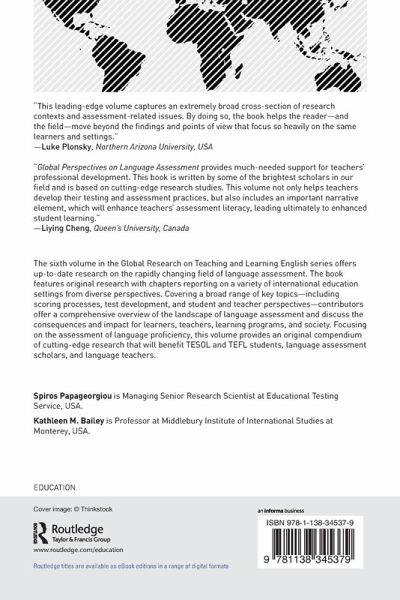 The sixth volume in the Global Research on Teaching and Learning English series offers up-to-date research on the rapidly changing field of language assessment. The book features original research with chapters reporting on a variety of international education settings from a range of diverse perspectives. Covering a broad range of key topics-including scoring processes, test development, and student and teacher perspectives-contributors offer a comprehensive overview of the landscape of language assessment and discuss the consequences and impact for learners, teachers, learning programs, and society. Focusing on the assessment of language proficiency, this volume provides an original compendium of cutting-edge research that will benefit TESOL and TEFL students, language assessment scholars, and language teachers.