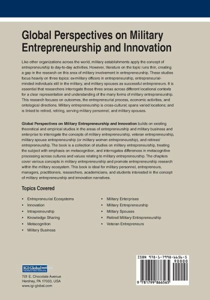 "The book is a collection of studies on military entrepreneurship, treating the subject with emphasis on metacognition, entrepreneurship that engages memory-monitoring and self-regulation, and meta-reasoning including knowledge about when and how to use particular strategies for learning or for problem solving"--