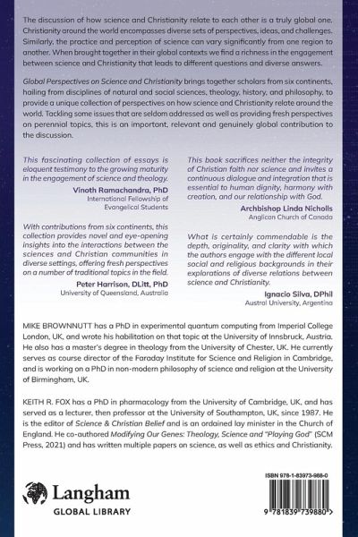 The discussion of how science and Christianity relate to each other is a truly global one. Christianity around the world encompasses diverse sets of perspectives, ideas, and challenges. Similarly, the practice and perception of science can vary significantly from one region to another. When brought together in their global contexts we find a richness in the engagement between science and Christianity that leads to diverse questions and distinctive answers. Global Perspectives on Science and Christianity brings together scholars from six continents, hailing from disciplines of natural and social sciences, theology, history, and philosophy, to provide a unique collection of perspectives on how science and Christianity relate around the world. Tackling some issues that are seldom addressed as well as providing fresh perspectives on perennial topics, this is an important, relevant and genuinely global contribution to the discussion.