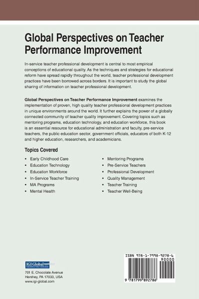 In-service teacher professional development is central to most empirical conceptions of educational quality. As the techniques and strategies for educational reform have spread rapidly throughout the world, teacher professional development practices have been borrowed across borders. It is important to study the global sharing of information on teacher professional development. Global Perspectives on Teacher Performance Improvement examines the implementation of proven, high quality teacher professional development practices in unique environments around the world. It further explains the power of a globally connected community of teacher quality improvement. Covering topics such as mentoring programs, education technology, and education workforce, this book is an essential resource for educational administration and faculty, pre-service teachers, the public education sector, government officials, educators of both K-12 and higher education, researchers, and academicians.