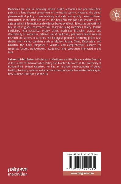Medicines are vital in improving patient health outcomes and pharmaceutical policy is a fundamental component of any health system. However, the global pharmaceutical policy is ever-evolving and data and quality 'research-based information' in this field are scarce. This book fills this gap and provides up-to-date empirical information and evidence-based synthesis. It focuses on pertinent key issues in global pharmaceutical policy including medicines safety, generic medicines, pharmaceutical supply chain, medicines financing, access and affordability of medicines, rational use of medicines, pharmacy health services research and access to vaccines and biological products. Featuring policy case studies from varied countries such as Mexico, Russia, China, Kyrgyzstan, and Pakistan, this book comprises a valuable and comprehensive resource for students, funders, policymakers, academics, and researchers interested in this field.