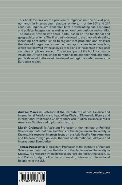 This book focuses on the problem of regionalism, the crucial phenomenon in international relations at the turn of the 20th and 21st centuries. Regionalism is analyzed both in terms of regional economic and political integration, as well as regional competition and conflict. The book is divided into three parts, based on the functional and geographical criteria. The first part is devoted to the theoretical setting, including brief introduction to regionalism problems and classical theories of integration, as well as new approaches to regionalism, which are followed by the analysis of regions in the context of regional security complexes concept. The second part of the book focuses on Asian and African challenges to regionalism and the third, and final, part is devoted to the most developed subregional order, namely the European region.