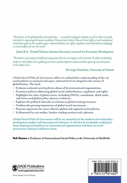 `[This] is essential reading for advanced students as well as all others seriously interested in improving the human condition. Nuanced and critical, Deacon's book offers a much needed and constructive guide to the complex supernational debates over rights, regulation and redistribution impinging on social welfare all over the world' - Jomo K.S., United Nations Assistant Secretary-General for Economic DevelopmentHow do global actors contribute to national and international social policy? How have the terms of global social policy discourse shifted in recent years? Global Social Policy and Governance explores these issues and presents a critical analysis of policy-making in an interconnected world.