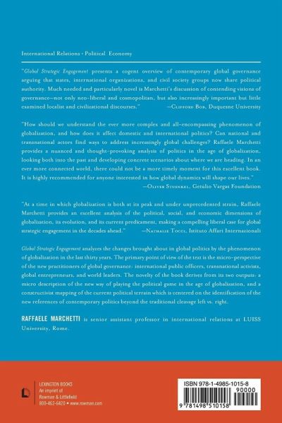 Global Strategic Engagement analyzes the changes brought about in global politics by the phenomenon of globalization in the last thirty years. The primary point of view of the text is the micro-perspective of the new practitioners of global governance: international public officers, transnational activists, global entrepreneurs, and world leaders. The novelty of the book derives from its two outputs: a micro description of the new way of playing the political game in the age of globalization, and a constructivist mapping of the current political terrain which is centered on the identification of the new references of contemporary politics beyond the traditional cleavage left vs. right.