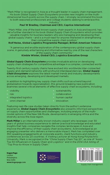 Twenty-first-century supply chains have evolved into world-wide inter-connected supply-and-demand networks comprising vastly more complex operations, with profound inter-dependencies and exposure to greater volatility in our uncertain world. The linear concept of a chain is therefore no longer adequate to describe these complex international networks of suppliers, stakeholders, partners, regulators and customers that are involved in ensuring the efficient and effective movement of products, services, information and funds around the world - we are firmly in the era of Global Supply Chain Ecosystems. Exploring the latest market trends and industry developments across emerging, developing and developed markets, in Global Supply Chain Ecosystems industry leader Mark Millar presents detailed and practical insights that will help you capitalise on market opportunities, overcome supply chain challenges and make better informed business decisions. In addition to highlighting key supply chain shifts such as the move beyond globalisation back towards regionalisation, this ground-breaking new publication explores several critical aspects of global supply chain ecosystems - including visibility, resilience, sustainability and collaboration.