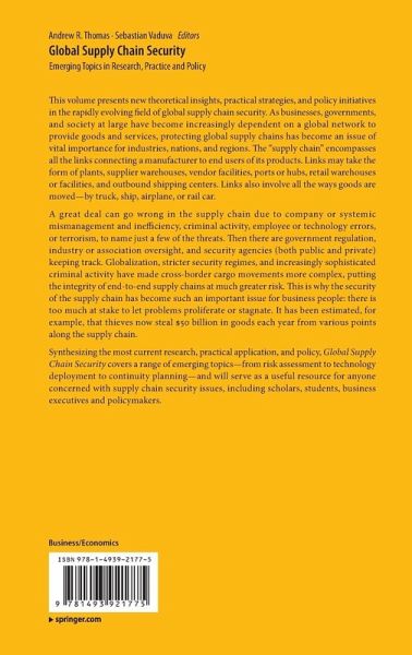 This volume presents new theoretical insights, practical strategies, and policy initiatives in the rapidly evolving field of global supply chain security. As businesses, governments, and society at large have become increasingly dependent on a global network to provide goods and services, protecting global supply chains has become an issue of vital importance for industries, nations, and regions. The "supply chain" encompasses all the links connecting a manufacturer to end users of its products. Links may take the form of plants, supplier warehouses, vendor facilities, ports or hubs, retail warehouses or facilities, and outbound shipping centers. Links also involve all the ways goods are moved-by truck, ship, airplane, or rail car.