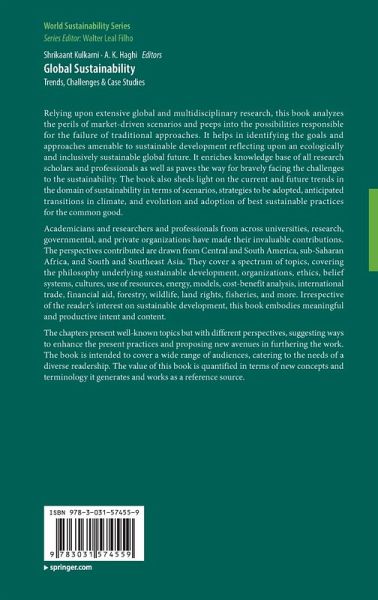 Chapter 1.Editorial: Global Sustainability: Trends, Challenges, and Case studies.- Part I. Global Sustainability: Trends.- Chapter 2. Emerging Trends in Sustainability: A Conceptual Exploration (Anitha. K).- Chapter 3. Sustainable Solutions to Combat Soil Erosion Using Biogenic Agents (Evangelin Ramani Sujatha).- Chapter 4. Circular Economy for Sustainable Development in India (Vijai).- Chapter 5. Evaluation of Sustainability Practices in Higher Education: A Study on Assessment Tools GASU and AISHE (Parvez Ahmad).- Part II. Global Sustainability: Challenges.- Chapter 6. Soil Conservation for Global Sustainability (Prasann Kumar).- Chapter 7. Designing a Framework for Sustainable Supply Chain Management of Coal Transportation (Suchismita Satapathy).- Chapter 8. Workplace Wellbeing of LGBT Individuals: Impact on Sustainability (Vaishnavi Nambiar).- Part III. Global Sustainability: Case Studies.- Chapter 9. Impact of Urban Expansion onUrban Heat: A Case Study of Greater London (Semudara, Oluwaseun Moses).- Chapter 10. Sustainable Cassava: A Case Study of Global Sustainability (Shrikaant Kulkarni).- Chapter 11. Case Studies in Sustainable Business Management in India (Amit Kumar Marwah).- Chapter 12. Role of Agricultural Science Centres in attaining Sustainability in India: A Case Study (A. K. Wavare).- Chapter 13. Collective Action for Transformative Change: The Case of Helston Climate Action Group (UK) (Kolade Victor Otokiti).