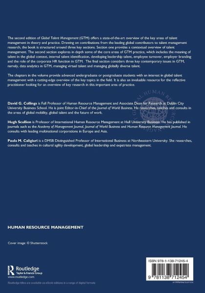 The second edition of Global Talent Management (GTM) offers a state of the art overview of the key areas of talent management in theory and practice. Drawing on contributions from the leading global contributors to talent management research, the book is structured around three key sections. Section one provides a contextual overview of talent management. The second section explores in depth some of the core areas of GTM practice which includes the meaning of talent in the global context, internal talent identification, developing leadership talent, employee turnover, employer branding and the role of the corporate HR function in GTM. The final section considers three key contemporary issues in GTM, namely, data analytics in GTM, managing virtual talent and managing globally diverse talent.