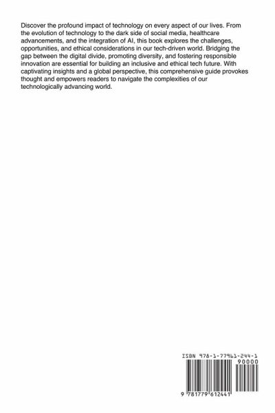 Discover the profound impact of technology on every aspect of our lives in The Global Tech Revolution. From the evolution of technology to the dark side of social media, healthcare advancements, and the integration of AI, this book explores the chaal considerations in our tech-driven world. Bridging the gap between the digital divide, promoting diversity, and fostering responsible innovation are essential for building an inclusive and ethical tech future. With captivating insights and. aglobal perspective, this comprehensive guide provokes thought and empowers readers to navigate the complexities of. ourtechnologically advancing world.