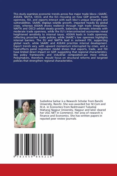 This study examines economic trends across five major trade blocs-SAARC, ASEAN, NAFTA, OECD, and the EU-focusing on how GDP growth, trade openness, FDI, and exports interact with each bloc's unique strengths and vulnerabilities. SAARC displays volatile growth, impacted heavily by global crises, whereas ASEAN shows resilience through high trade integration. NAFTA and OECD exhibit steady growth, balancing domestic interests with moderate trade openness, while the EU's interconnected economies reveal heightened sensitivity to internal issues. ASEAN leads in trade openness, reflecting proactive trade policies, while SAARC's low openness highlights internal barriers. The EU and NAFTA lead in outward FDI, supporting global reach, while SAARC and ASEAN prioritize internal development. Export trends vary, with upward momentum interrupted by crises, and a fixed-effects panel regression model shows that exports, trade, and FDI have limited direct impact on GDP, suggesting that regional characteristics-like policy frameworks and industrial composition-are more critical. Policymakers, therefore, should focus on structural reforms and targeted policies that strengthen regional characteristics.