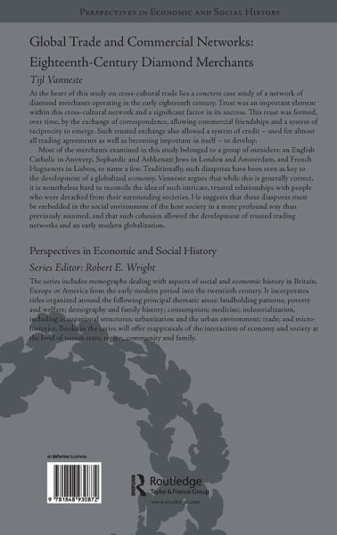 At the heart of this study on cross-cultural trade lies a concrete case-study of a network of diamond merchants operating in the early eighteenth century. All the traders examined in this study are outsiders: an English Catholic in Antwerp, Sephardic and Ashkenazi Jews in London and Amsterdam and French Huguenots in Lisbon.