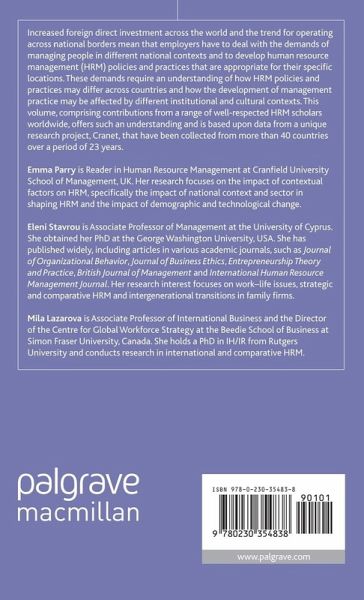 Provides an understanding of how HRM policies and practices differ across countries and how the development of management practice may be affected by different institutional and cultural contexts. Containing contributions from a range of well-respected HRM scholars across the world, this collection is based upon data from a unique research project.