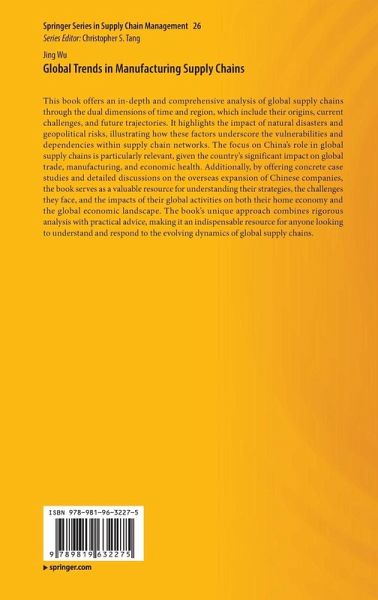 This book offers an in-depth and comprehensive analysis of global supply chains through the dual dimensions of time and region, which include their origins, current challenges, and future trajectories. It highlights the impact of natural disasters and geopolitical risks, illustrating how these factors underscore the vulnerabilities and dependencies within supply chain networks. The focus on China's role in global supply chains is particularly relevant, given the country's significant impact on global trade, manufacturing, and economic health. Additionally, by offering concrete case studies and detailed discussions on the overseas expansion of Chinese companies, the book serves as a valuable resource for understanding their strategies, the challenges they face, and the impacts of their global activities on both their home economy and the global economic landscape. The book's unique approach combines rigorous analysis with practical advice, making it an indispensable resource for anyone looking to understand and respond to the evolving dynamics of global supply chains.