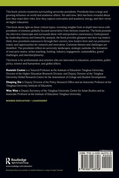 This book unlocks mysteries surrounding university presidents and looks at how they enact their roles, how they capture motivation and academic energy, and their views on higher education. This book is for professionals and scholars who are interested in education, universities, public policy, science and humanities, and global affairs.