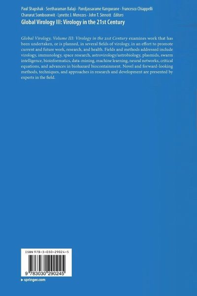 Global Virology, Volume III: Virology in the 21st Century examines work that has been undertaken, or is planned, in several fields of virology, in an effort to promote current and future work, research, and health. Fields and methods addressed include virology, immunology, space research, astrovirology/astrobiology, plasmids, swarm intelligence, bioinformatics, data-mining, machine learning, neural networks, critical equations, and advances in biohazard biocontainment. Novel and forward-looking methods, techniques, and approaches in research and development are presented by experts in the field.
