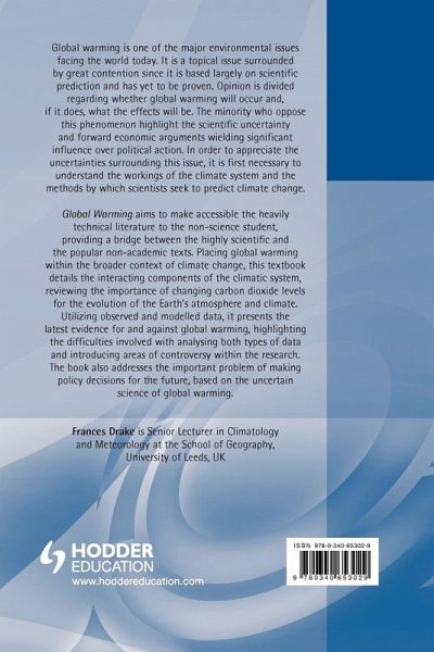 This topical textbook provides a bridge between technical and popular texts on global warming within the broader context of climate change. Written at an introductory level, it explains the interacting components of this system : what the greenhouse effect is; and how scientists seek to predict climate change. It makes accessible the technical and heavy science literature to the 'non-science' student. Global warming is one of the major environmental problems facing the world today. But it is an issue surrounded by great contention because it is based largely on scientific prediction and has yet to be proven. Opinion is divided regarding whether global warming will occur and, if it does, what the effects will be. In order to appreciate the uncertainties surrounding this issue, it is necessary to understand the workings of the climate system and the methods by which scientists seek to predict climate change. 'Global Warming' aims to make accessible the heavily technical literature to the non-science student, providing a bridge between the highly scientific and the popular non-academic texts. Placing global warming within the broader context of climate change, this textbook details the interacting components of the climatic system, reviewing the importance of changing carbon dioxide levels for the evolution of the Earth's atmosphere and climate. Utilising observed and modelled data, it presents the latest evidence for and against global warming whilst highlighting the difficulties involved with analysing both types of data and introducing areas of controversy within research. The book also addresses the important problem of making policy decisions for the future, based on the uncertain science of global warming.