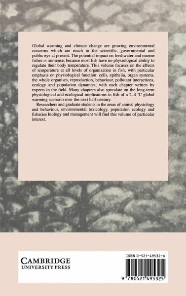 Preface; 1. Temperature thresholds for protein adaptation: when does temperature start to 'hurt'? G. N. Somero, and G. E. Hofmann; 2. Membrane constraints to physiological function at different temperatures: does cholesterol stabilize membranes at elevated temperatures? J. C. Robertson, and J. R. Hazel; 3. The effect of temperature on protein metabolism in fish: the possible consequences for wild Atlantic salmon (Salmo salar L.) stocks in Europe as a result of global warming I. D. McCarthy, and D. F. Houlihan; 4. Thermal stress and muscle function in fish I. A. Johnston, and D. Ball; 5. Factors which may limit swimming performance at different temperatures E. W. Taylor, S. Egginton, S. E. Taylor and P. J. Butler; 6. Effects of temperature on cardiovascular performance A. P. Farrell; 7. Temperature effects on the reproductive performance of fish G. Van Der Kraak, and N. W. Pankhurst; 8. The effects of temperature on embryonic and larval development P. J. Rombough; 9. Temperature and growth: modulation of growth rate via temperature change M. Jobling; 10. Effects of climate change on cod (Gadus morhua) stocks K. Brander; 11. Temperature effects on osmoregulatory physiology of juvenile anadromous fish S. D. McCormick, J. M. Shrimpton, and J. D. Zydlewski; 12. Effects of temperature on xenobiotic metabolism C. J. Kennedy, and P. J. Walsh; 13. Interactive effects of temperature and pollutant stress S. D. Reid, D. G. McDonald, and C. M. Wood; 14. Behavioural compensation for long-term thermal change L. I. Crawshaw, and C. S. O'Connor; 15. Thermal niche of fishes and global warming J. J. Magnuson, and B. T. DeStasio; Index.