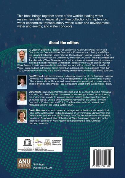 This book brings together some of the world's leading water researchers with an especially written collection of chapters on: water economics; transboundary water; water and development; water and energy; and water concepts.