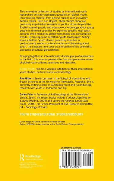This innovative collection of studies by international youth researchers, critically addresses questions of 'global' youth, incorporating material from regions as diverse as Sydney, Tehran, Dakar and Manila, and advancing our knowledge about young people around the globe. Exploring specific local youth cultures whilst mediating global mass media and consumption trends, this book traces subaltern 'youth landscapes' and tells subaltern 'youth stories' previously invisible in predominantly western youth cultural studies and theorizing. The chapters here serve as a refutation of the colonialist discourse of cultural globalization. Showcasing previously unpublished youth research from outside the English-speaking world alongside the work of well-known researchers such as Huq and Holden, these accounts of youth cultural practices highlight much that is predictably different, but also a great deal of common ground. This book goes inside creative cultural formation of youth identities to critically examine the global in the local. Bringing together an internationally diverse group of researchers, who describe and analyze youth cultures throughout Europe, the Americas, Asia, Africa and Oceania, this volume presents the first comprehensive review of global youth cultures, practices and identities, and as such is a valuable read for students and researchers of youth studies, cultural studies and sociology.