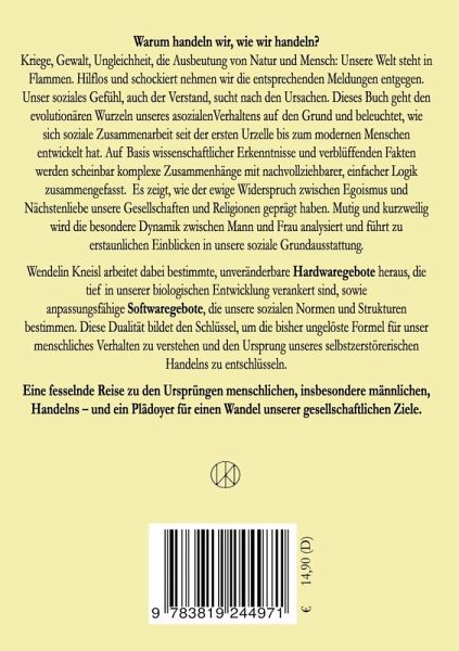 Für alle Menschen, die nach den wahren und nachvollziehbaren Gründen suchen, warum ein friedliches, gerechtes und nachhaltiges Zusammenleben auf unserem Planeten nicht funktioniert. Wenn man fragt, warum in unserer modernen Welt Krieg, Ausbeutung, Mobbing, Hunger und Umweltzerstörung alltäglich sind, erhält man oft Antworten wie: Der Mensch ist von Natur aus böse, Egoismus, Neid sowie Gier sind die treibenden Kräfte. Doch wie lässt sich dies mit Rationalität und logischem Denken vereinbaren? Was sind die evolutionären Voraussetzungen für ein zufriedenes ausgeglichenes Miteinander, um letzten Endes ein glückliches Leben für alle Menschen zu ermöglichen. Zahlreiche wissenschaftliche Erkenntnisse aus verschiedenen Disziplinen wie Archäologie, Verhaltensbiologie und Naturwissenschaften werden zu einer rationalen und logischen Kette evolutionärer Entwicklungen verknüpft. Dies soll möglichst einfach und verständlich dargestellt werden.