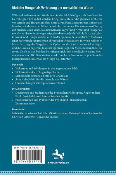 Während Weltarmut und Welthunger in der Ethik häufig nur als Probleme der Gerechtigkeit behandelt werden, bringt Julia Müller die globalen Probleme von Armut und Hunger mit dem normativen Fundament unseres universalen Moralverständnisses, der Menschenwürde, zusammen. Die Zusammenführung der menschlichen Würde als normativem Begriff und Armut und Hunger als moralische Herausforderungen zeigt, dass die menschliche Würde durch ein Leben in Armut und Hunger verletzt wird.In der Ignoranz des moralischen Problems, einer systemisch verursachten chronischen Notsituation für viele Millionen Menschen, liegt das Vergehen, die Opfer moralisch nicht zu berücksichtigen und ihr Leid zu negieren. In dieser Ignoranz liegt eine Menschenblindheit, die so tut, als ob es sich bei den Betroffenen nicht um moralisch relevante Menschen handelte.