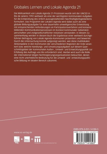 Die Wirksamkeit von Lokale Agenda 21-Prozessen wurde seit der UNCED in Rio de Janeiro 1992 weltweit als eine der wichtigsten kommunalen Aufgaben für die Entwicklung des örtlich auszugestaltenden Nachhaltigkeitsgedankens formuliert. Das Programm der Lokalen Agenda wird dabei auch als eine globale Bildungsaufgabe für eine dauerhaft umweltgerechte Entwicklung mit entsprechenden Anforderungen an Partizipationsverfahren und konsensbildenden Kommunikationsprozessen im Kontext kommunaler Gebietskörperschaften und zivilgesellschaftlicher Initiativen verstanden. In diesem Zusammenhang werden in diesem Buch die Ergebnisse einer weltweit durchgeführten Befragung von Lokale Agenda-Kommunen präsentiert und bewertet. Durch die Untersuchung kann aufgezeigt werden, wie diese multilokalen Aktionspläne in den Kommunen der verschiedenen Regionen der Erde verankert bzw. welche Handlungs- und Umsetzungsaufgaben auf diesem Querschnittsgebiet der kommunalen Außen-, Umwelt- und Entwicklungspolitik zur Erfüllung des Auftrags von Rio erforderlich sind. Hierbei wird auch die Rolle der international tätigen Nichtregierungsorganisationen beleuchtet, denen eine nicht unerhebliche Bedeutung für die umwelt- und entwicklungspolitische Bildung im lokalen Bereich zukommt.