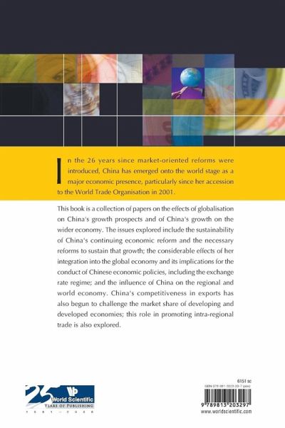 In the 26 years since market-oriented reforms were introduced, China has emerged onto the world stage as a major economic presence, particularly since her accession to the World Trade Organisation in 2001.This book is a collection of papers on the effects of globalisation on China's growth prospects and of China's growth on the wider economy. The issues explored include the sustainability of China's continuing economic reform and the necessary reforms to sustain that growth; the considerable effects of her integration into the global economy and its implications for the conduct of Chinese economic policies, including the exchange rate regime; and the influence of China on the regional and world economy. China's competitiveness in exports has also begun to challenge the market share of developing and developed economies; this role in promoting intra-regional trade is also explored.