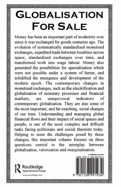 First published in 2001. Understanding and managing global financial flows and their impact of social spaces and people, is one of the most complex and difficult tasks facing politicians and social theorists today. Helping to meet the challenges posed by these changes, this important volume focuses on three question central to the interplay between globalisation, valorisation and marginalization.