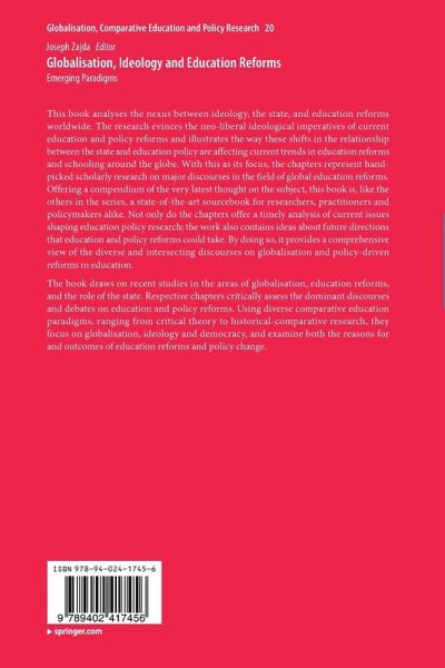 1 Globalisation and Education Reforms: Emerging Research Issues.- 2 Analysing the (mis)use and Consequences of International Large-scale Assessments.- 3 The Unintended Consequences of Governance of Education at a Distance through Assessment and Standardization.- 4 Crisis in Economic Theory and the Implications for PISA Derived Education Policy.- 5 Globalizations, Meta-Ideological Hegemony and Challenges from Populism in Education.- 6 Social Change and Education Reforms in High Performing Education Systems: Policy Lessons from Singapore and Hong Kong.- 7 Globalisation and Current Reseearch on Teaching Values Education.- 8 Constructivist and Constructionist Pedagogy in a Globalised World: Clarifying the Constructs.- 9 Creation of Questionable Honour: Proliferation of For-Profit Honourable Societies.- 10 Reflections on the Legacy of Nelson Mandela and the Relevance for Educational Tranformation Globally.- 11 Research Priorities and Developments in Education Reforms Globally.