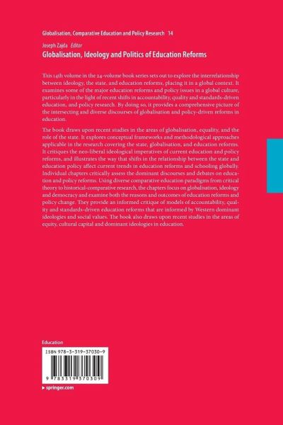 This 14th volume in the 24-volume book series sets out to explore the interrelationship between ideology, the state, and education reforms, placing it in a global context. It examines some of the major education reforms and policy issues in a global culture, particularly in the light of recent shifts in accountability, quality and standards-driven education, and policy research. By doing so, it provides a comprehensive picture of the intersecting and diverse discourses of globalisation and policy-driven reforms in education.