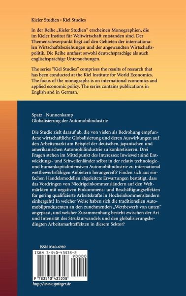 Julius Spatz/Peter Nunnenkamp: Globalisierung der Automobilindustrie. Wettbewerbsdruck, Arbeitsmarkteffekte und Anpassungsreaktionen. Springer-Verlag, Heidelberg 2002, 116 Seiten, 59,95 Euro.